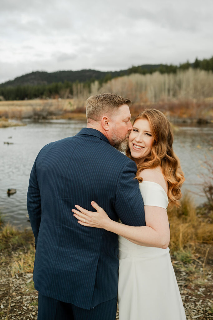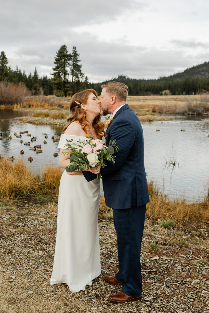 After the ceremony, we headed just down the street to a beautiful trailhead located right in the heart of South Lake Tahoe. One of the best parts of eloping here is how quickly you can transition from town to nature. Within minutes, a peaceful meadow, towering pine trees, sweeping mountain views, and a quiet pond with ducks drifting by surrounded us.