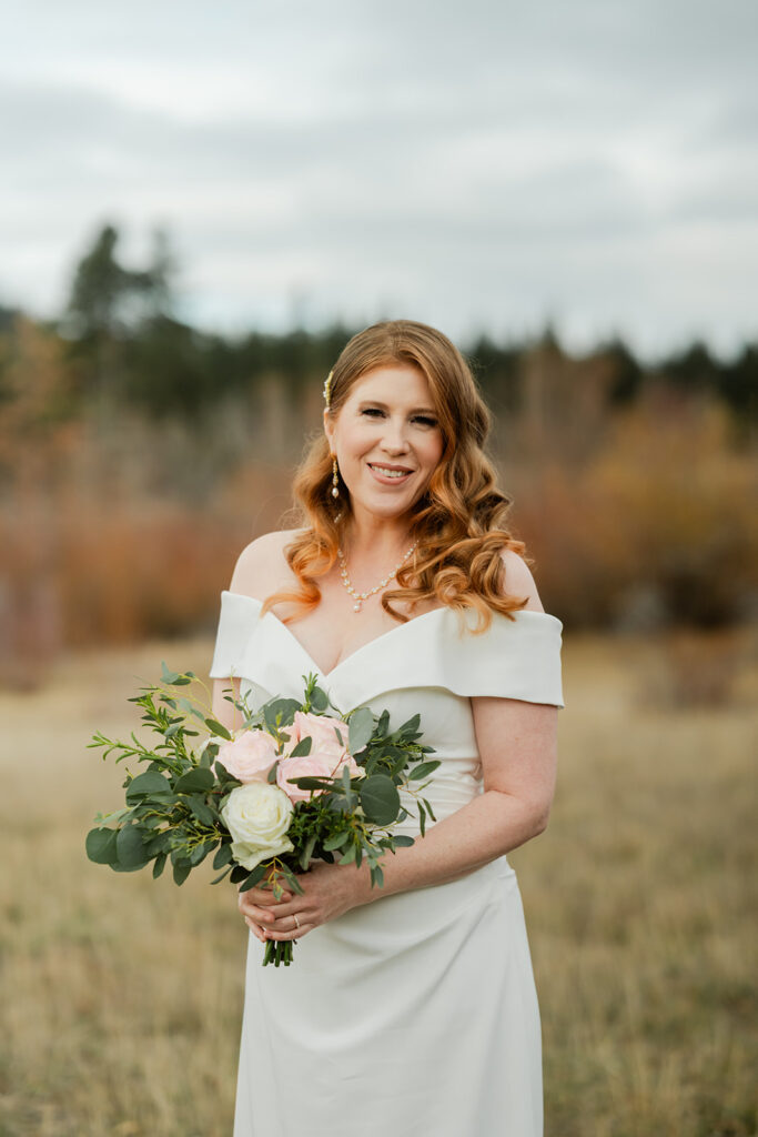 South Lake Tahoe wedding portraits with pine trees, meadow, and alpine backdrop