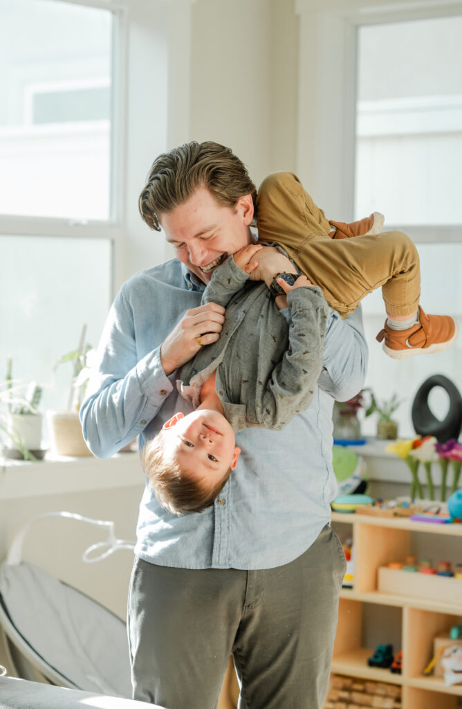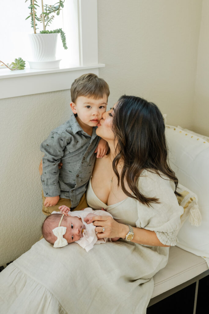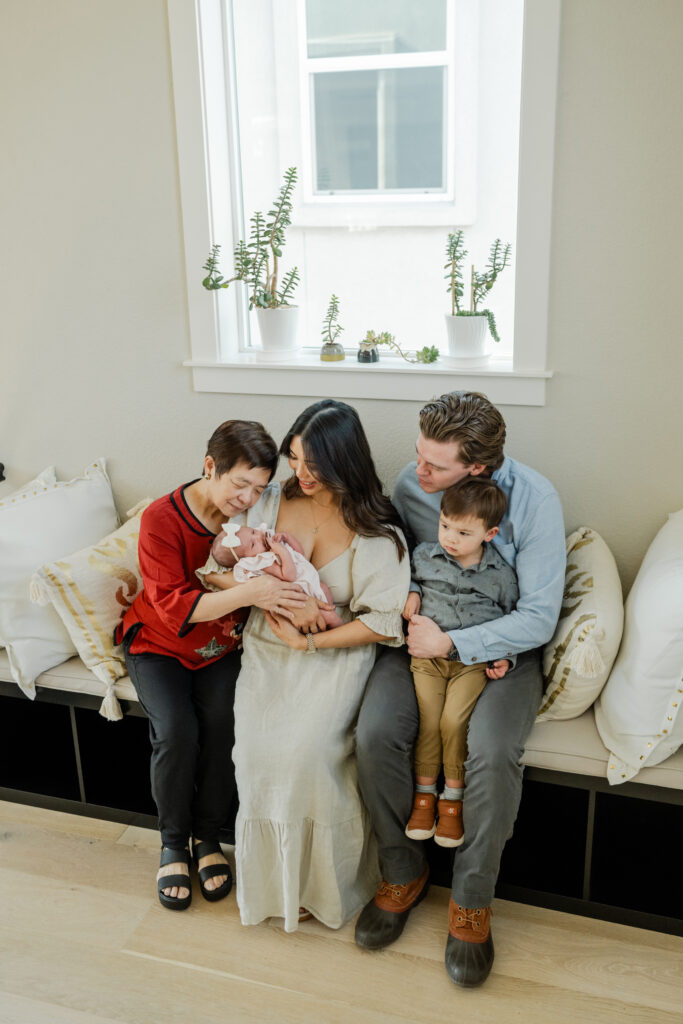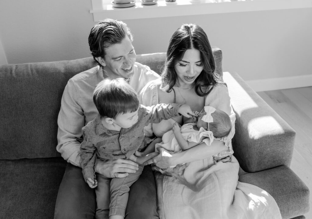 We were able to fully utilize their home, moving through multiple rooms to create a diverse and natural gallery while keeping everything relaxed. They included their older son throughout the session, capturing sweet, genuine, and unposed moments with his new sibling.