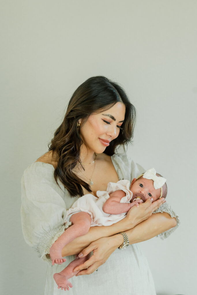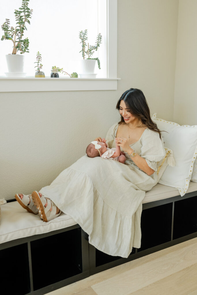 Lifestyle newborn sessions take place entirely in your home, allowing your family to stay relaxed and comfortable during those early postpartum days. There’s no need to pack up diaper bags, outfits, or navigate leaving the house with a brand-new baby. Instead, everything happens in a familiar space where you and your newborn can settle in naturally.