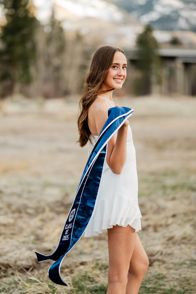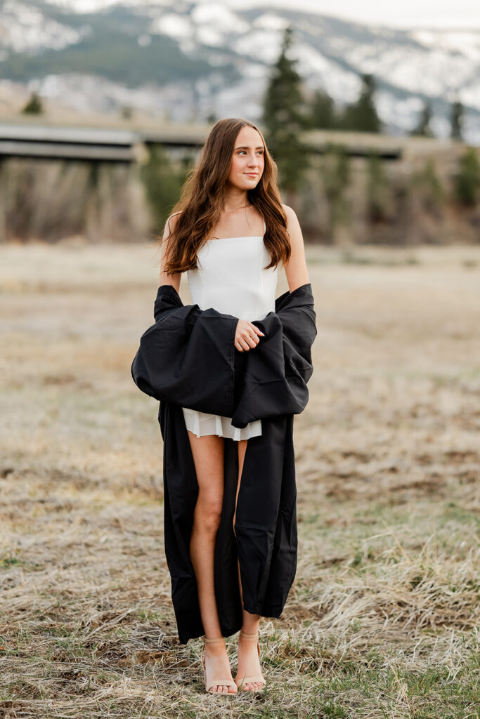 Some of my favorite images from the entire session came from this part of the shoot. The mountains in the background, the open field, and the motion from the wind gave the photos a completely different look from the campus images, which is exactly what I want every senior gallery to have.
